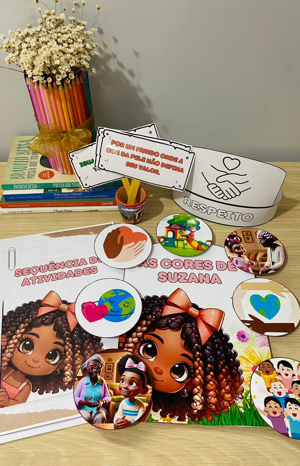 Este material pedagógico exclusivo apresenta a história de Suzana, uma menina curiosa que aprende sobre diversidade e respeito aos diferentes tons de pele.