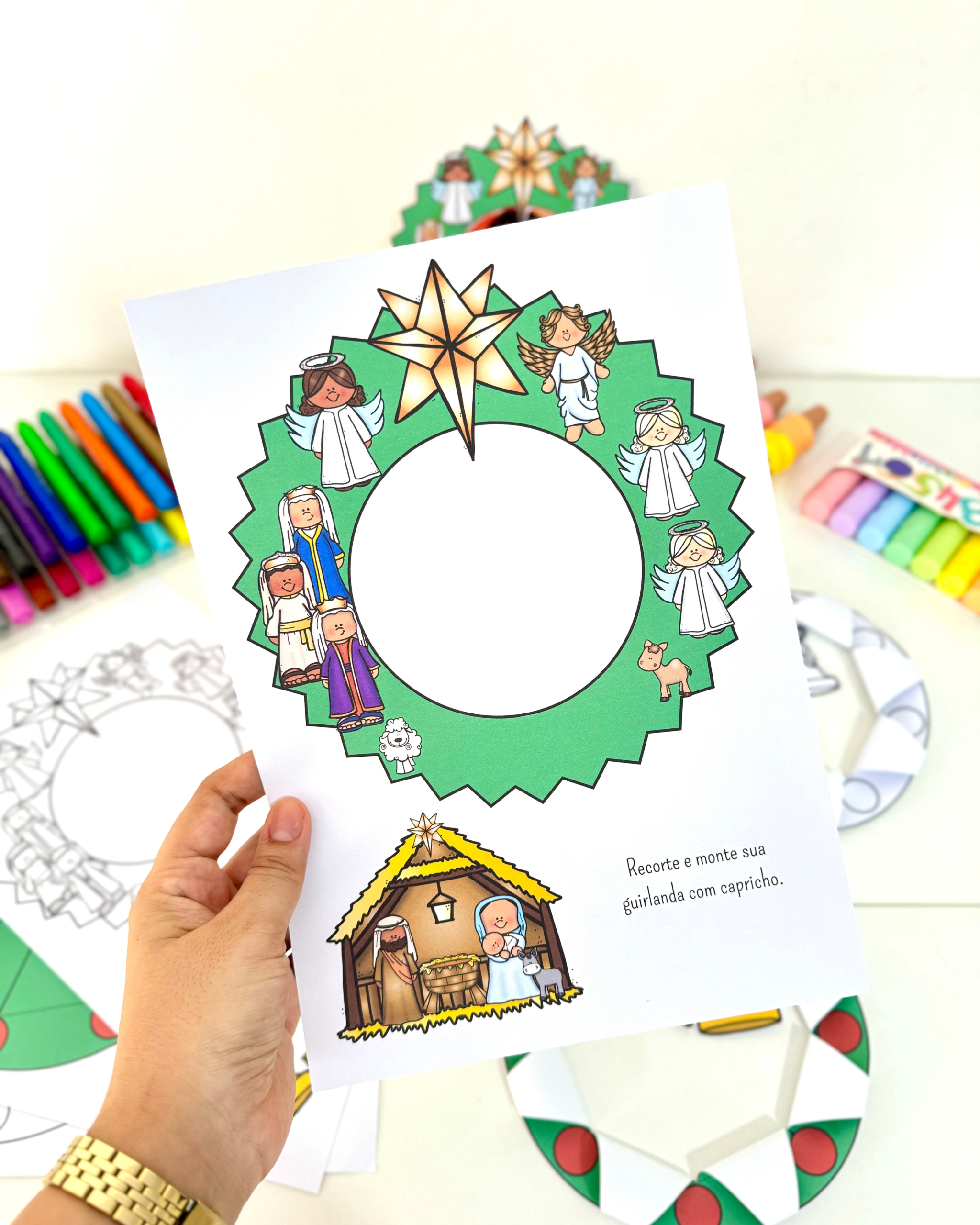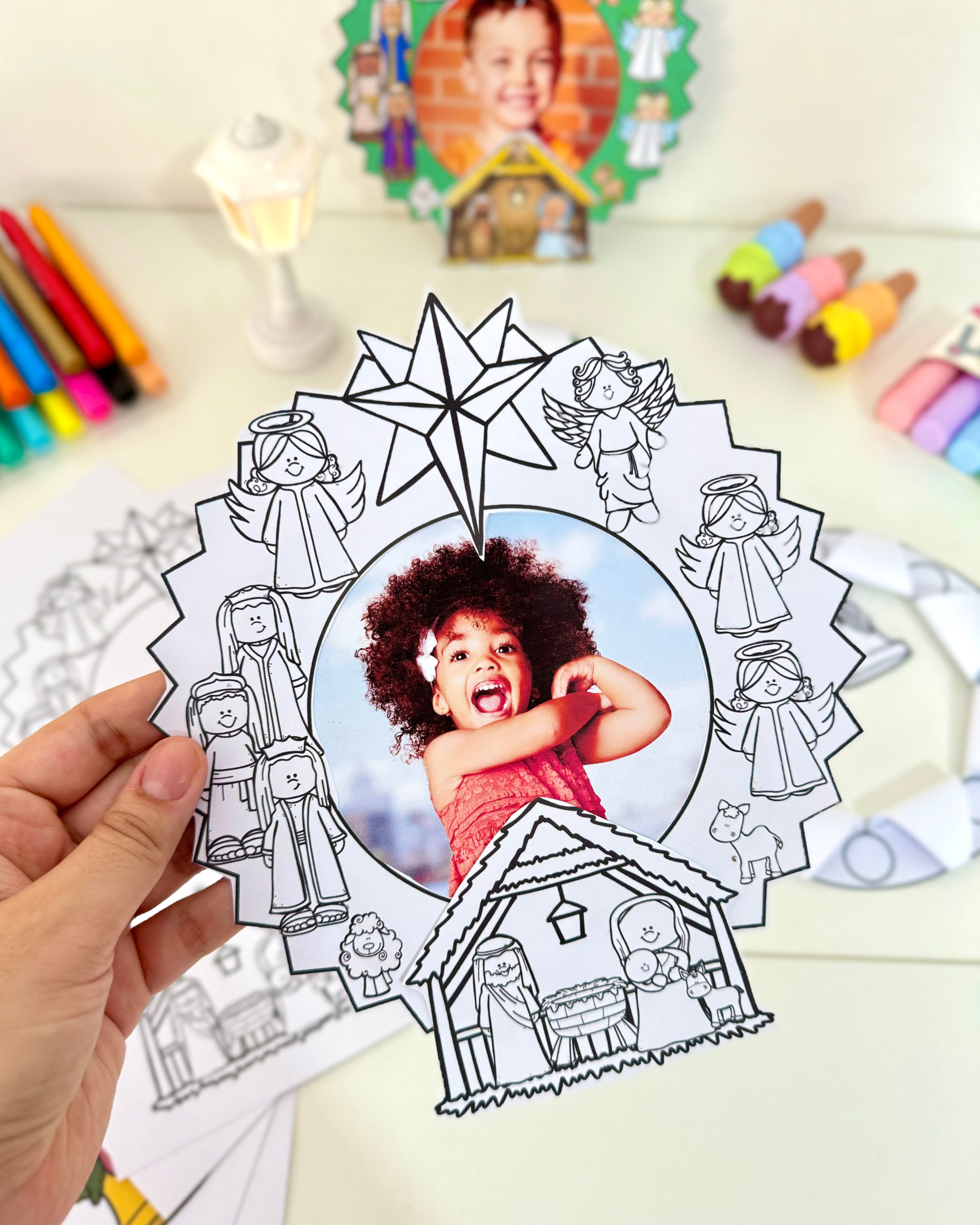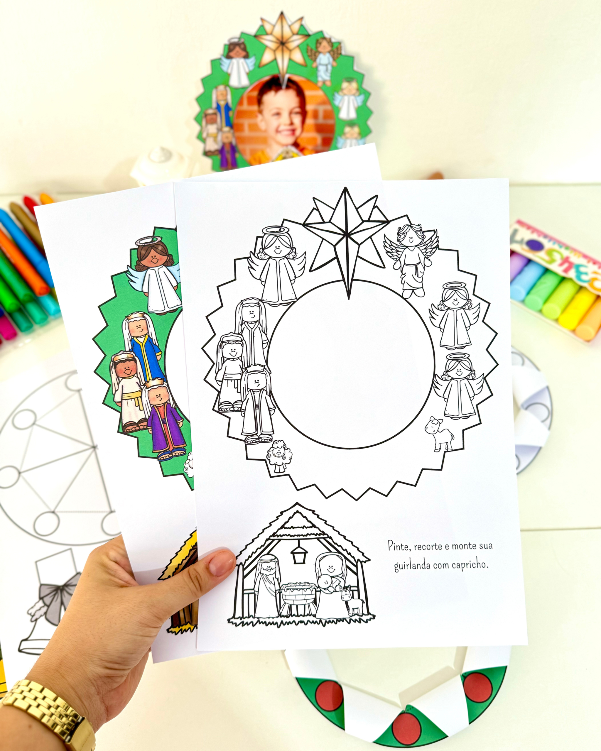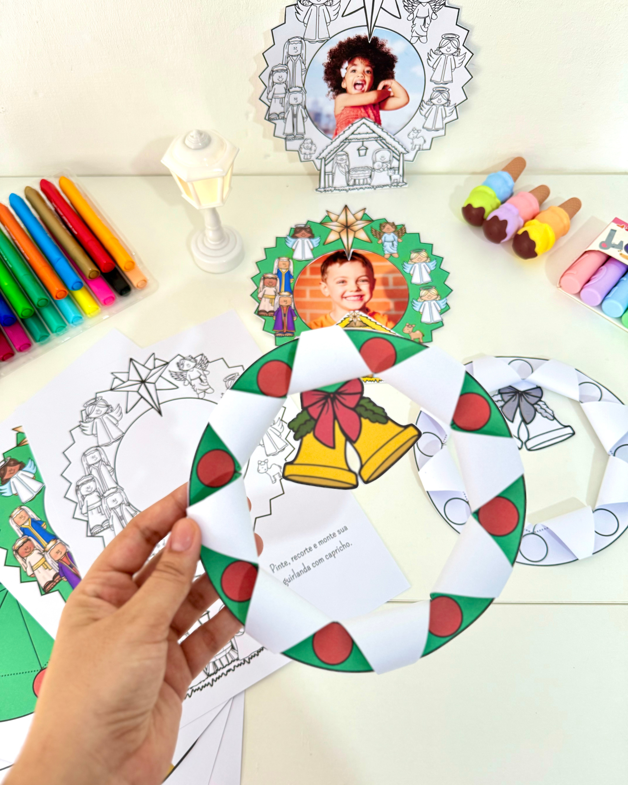 🎁 Guirlanda para recortar e colar o presépio (com opção de colar a foto da criança)