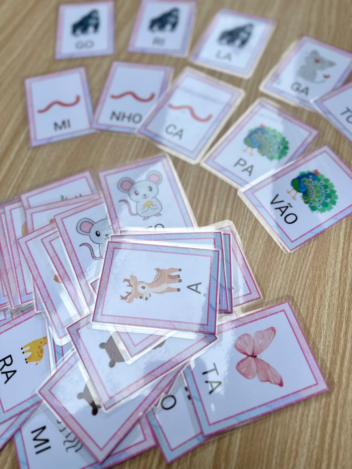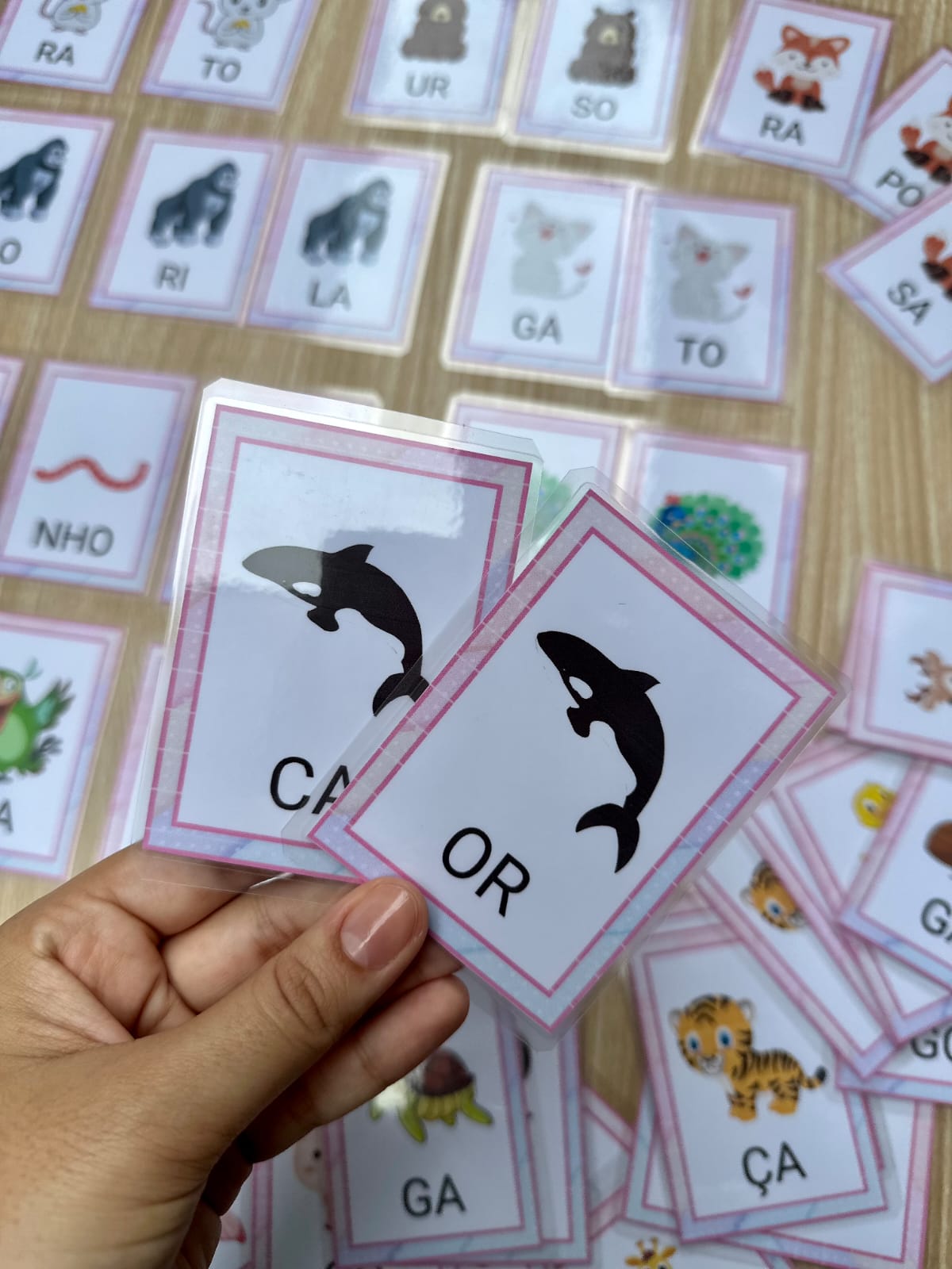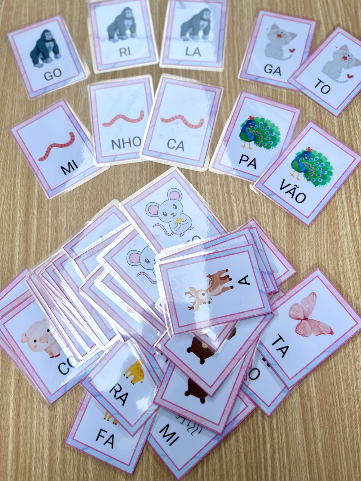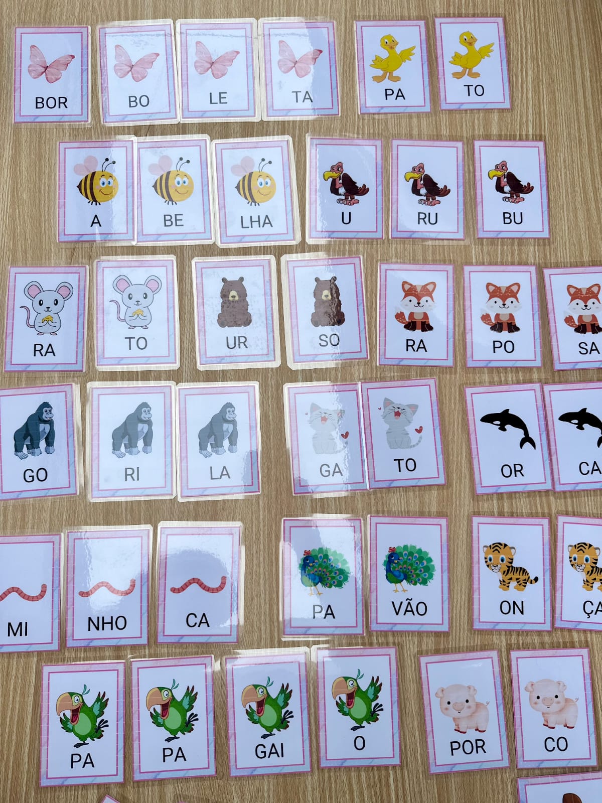 Este recurso foi pensado para auxiliar crianças em fase inicial de alfabetização na leitura e escrita de palavras através do pareamento e ordenação de sílabas com apoio visual. Cada card apresenta a imagem do animal e as sílabas que compõem seu nome, estimulando a leitura, a consciência silábica e o reconhecimento da estrutura das palavras.