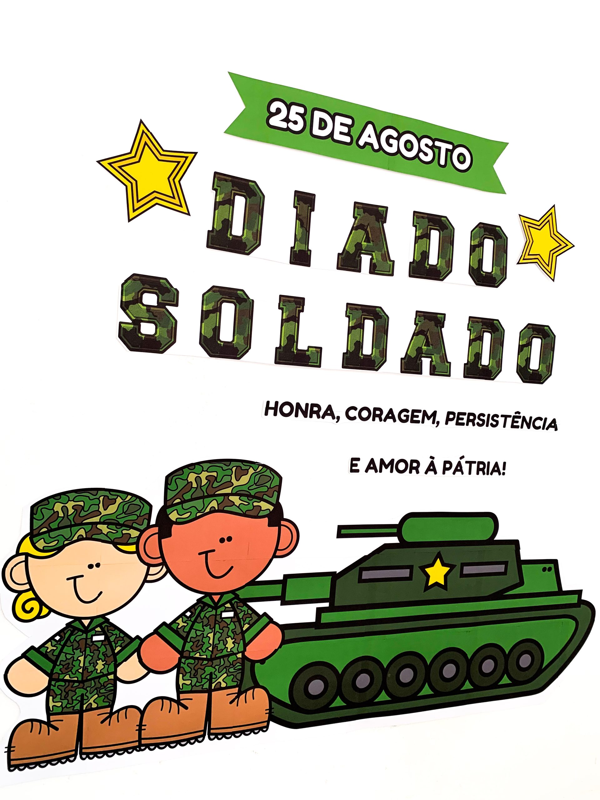 Arquivo educativo e visualmente encantador para trabalhar o tema Dia do Soldado com crianças da Educação Infantil.