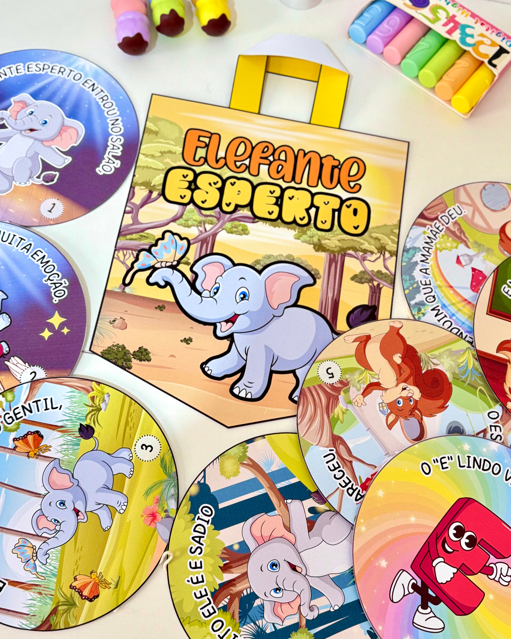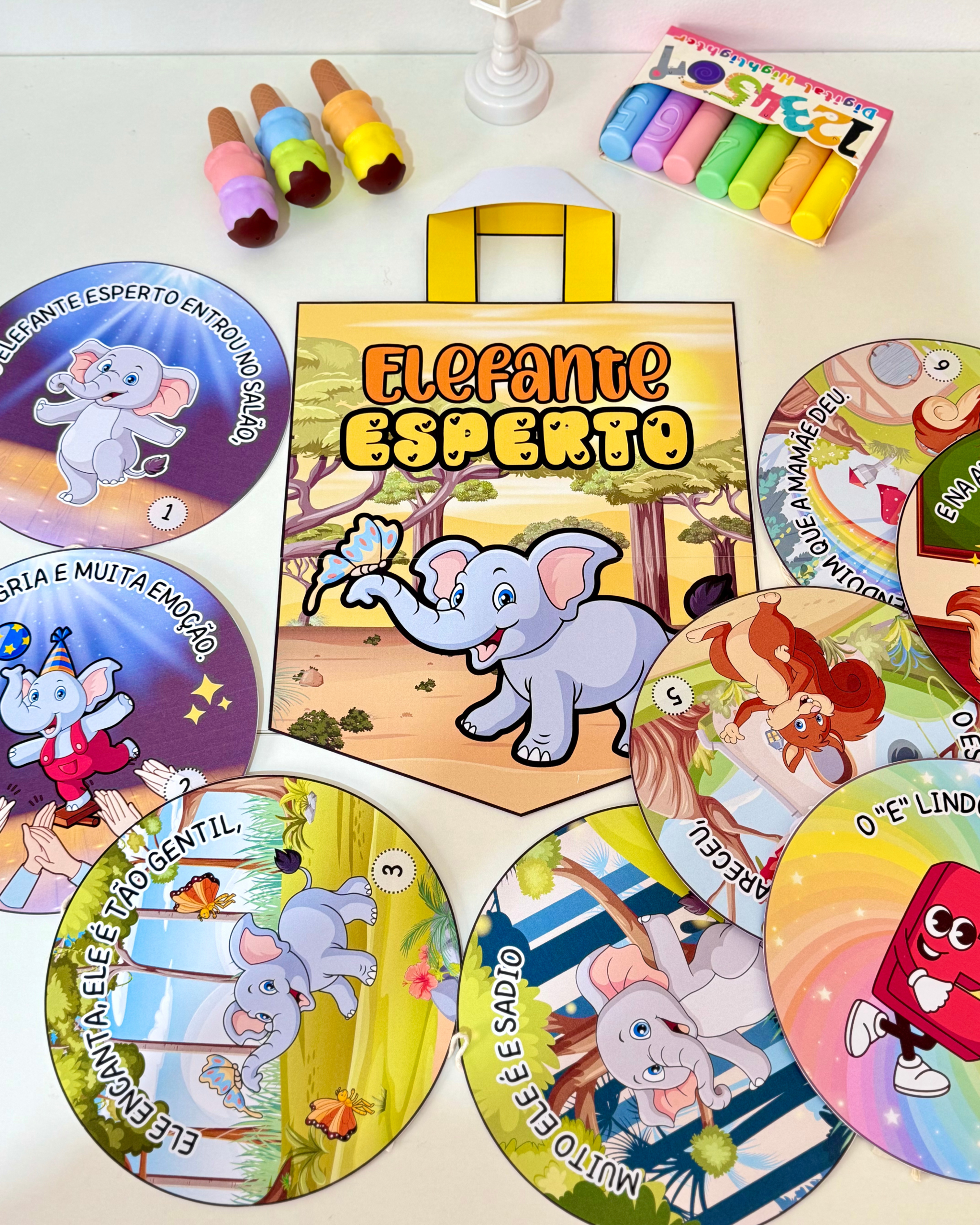 ✅ História interativa rimada “Elefante Esperto” – com 8 páginas