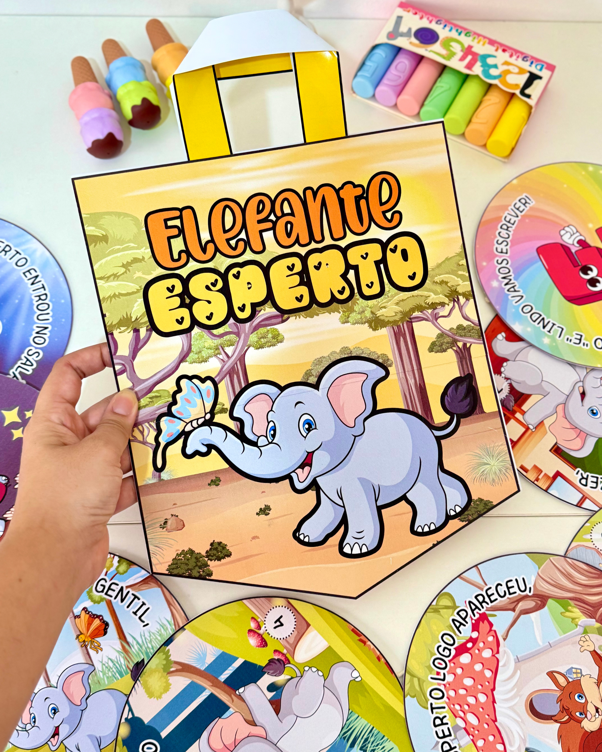 👜🐘 Sacola da Vogal E – Com a história interativa “Elefante Esperto”