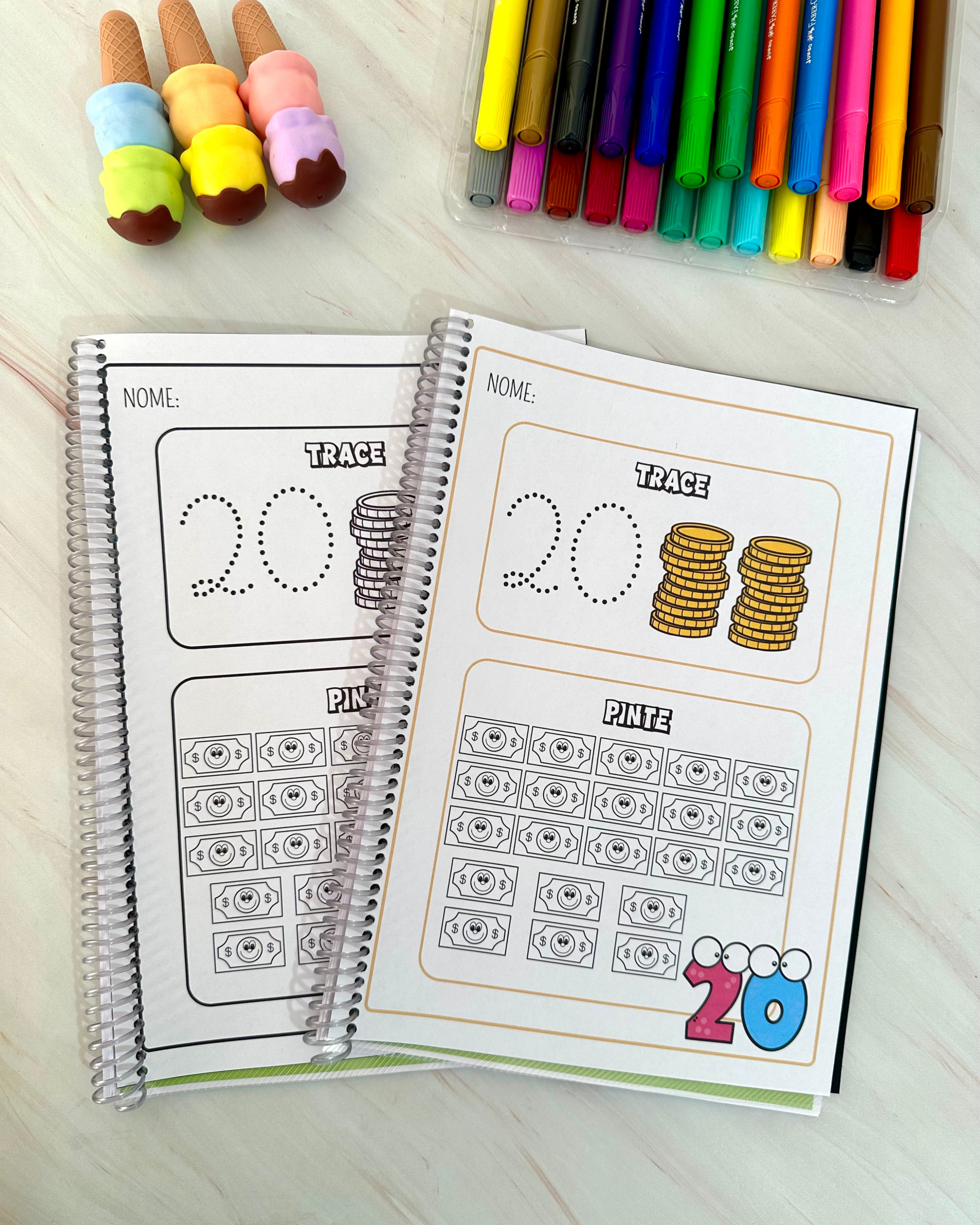 20 páginas de atividades (1 para cada numeral de 1 a 20)